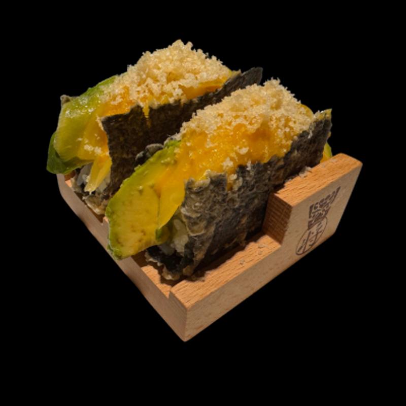 6 pieces of Mango Roll, 6 pieces of Yam Roll, 6 pieces of Avocado Cucumber Roll, 2 pieces of Egg Cake, 2 pieces of Bean Curd Pocket, 2 pieces of Seaweed Salad.