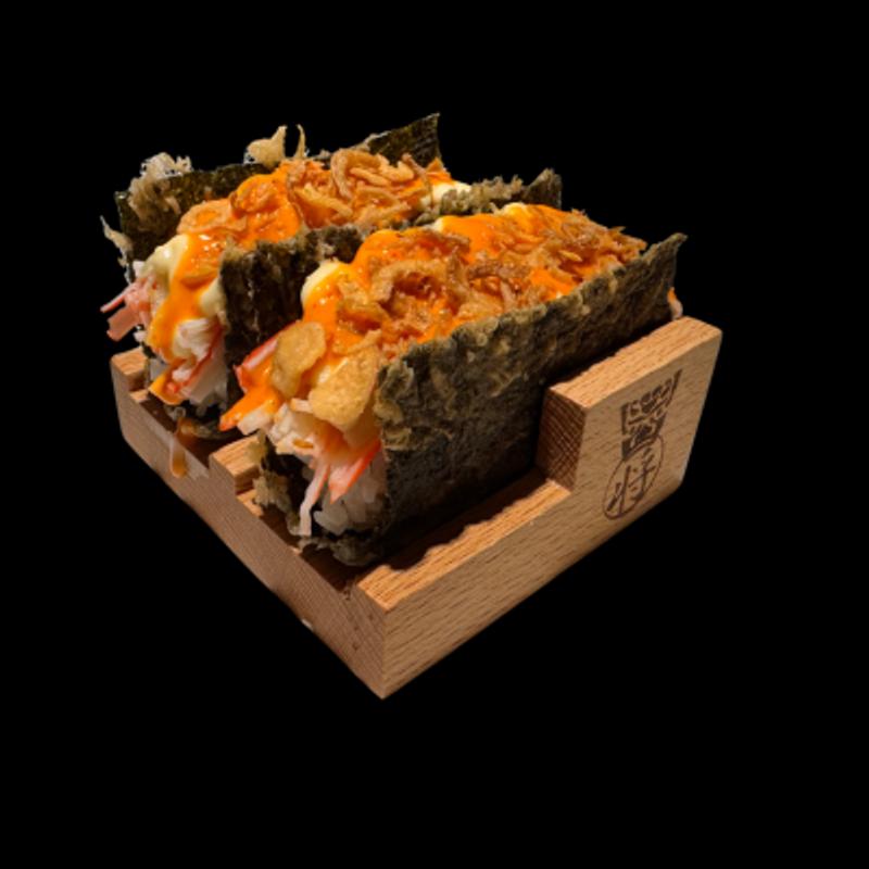6 pieces of Spicy Salmon Roll, 6 pieces of Spicy Crispy Salmon Roll, 6 pieces of Spicy Tuna Roll, 6 pieces of Spicy Crispy Salmon Roll.
